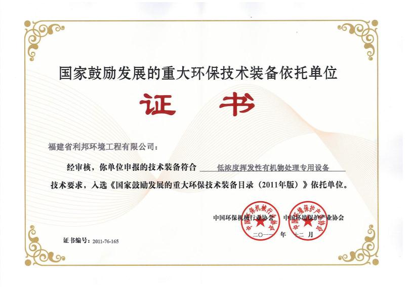 福建省利邦環境有限公司創建于2006年12月,座落在福建省莆田市涵江區國家級高新技術產業園區,是國家高新技術企業、國家重大環保裝備依托單位、福建省科技型企業、福建省創新性企業、福建省首批科技小巨人、福建省“專精特新”專業化企業,擁有企業研發中心、福建省有機廢氣凈化設備工程技術研發中心;公司產品獲得科技部、環保部、商務部、國家質量監督總局頒發的“國家重點新產品”證書,“中低濃度揮發性有機物回收凈化裝備”被列入《國家鼓勵發展的重大環保技術裝備目錄(2017年版)》;公司核心發明專利分別獲得了中國專利獎優秀獎、福建省專利獎二等獎等專利獎項,其中兩個核心技術分別獲得福建省技術發明獎二等獎、福建省科學技術進步獎二等獎;公司通過了ISO9001質量管理體系認證,擁有住建部工程設計資質環境工程(大氣污染防治工程)專項乙級資質單位,承接大型的環保工程和環保設備制造;公司是工業有機廢氣VOCs綜合治理方案提供商,是集技術設備設計研發、制造、銷售為一體的科技環保企業。